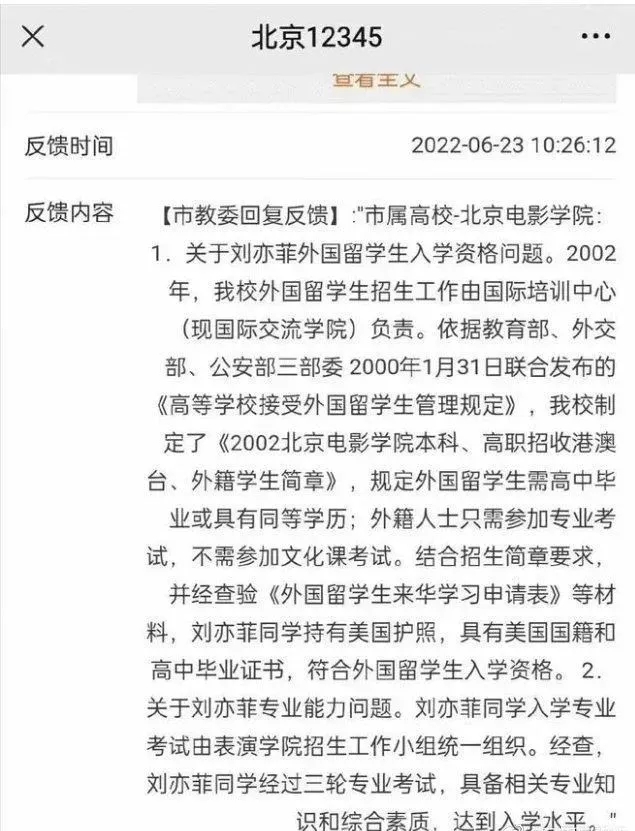 随后,官方回复了刘亦菲入学资格问题,称刘亦菲持有美国护照,具有美国国籍和高中毕业证书,符合外国留学生入学资格。