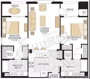 美国公寓房型很好理解,跟国内普通居家没有多大差别。小绿妈尔湾豪华馆分两种户型,一房一卫和两房两卫,当然,比如两房中可能也有2-3种户型,只是面积大小区别不大,居住区别也不大,差异性可以忽略不计。