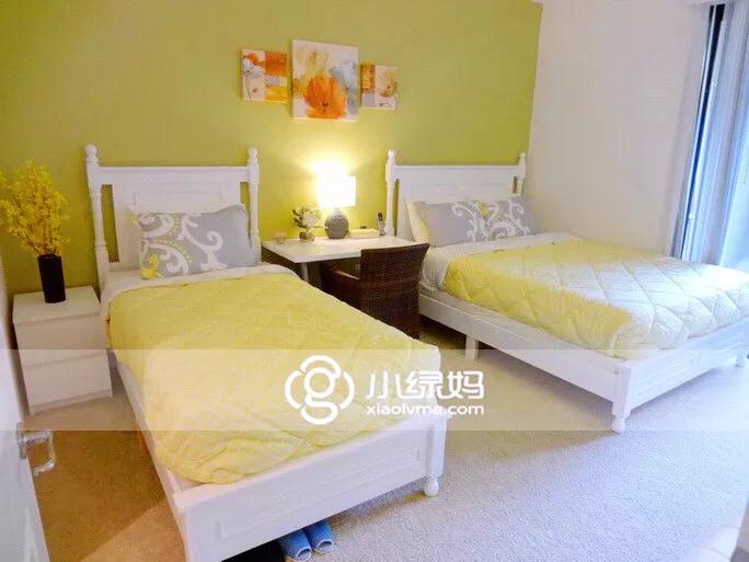 小绿妈豪华馆,墙是淡绿色,床品及花都是暖暖的黄色系,这些都是是新生命的颜色,和我们小绿妈品牌一样,生机勃勃,和你一起,迎接新生宝宝的到来!