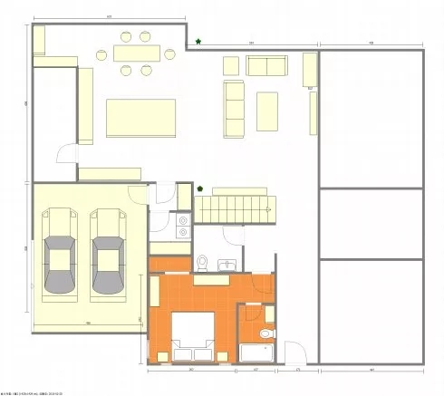 这是小绿妈尊享馆一栋别墅的一楼户型图,图中橙色区域就是一个小套房。