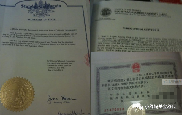 三级认证是美宝出生纸的认证,三级分别是加州州政府、洛杉矶县政府、中国领事馆,他们仨轮流对美宝出生纸做个认证,大致意思就是:这个文件是真实的,不是仿造的,是有效的,合法的。