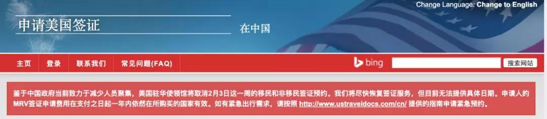 美国驻中国大使馆,暂时停止赴美的所有签证,具体恢复时间为待定。