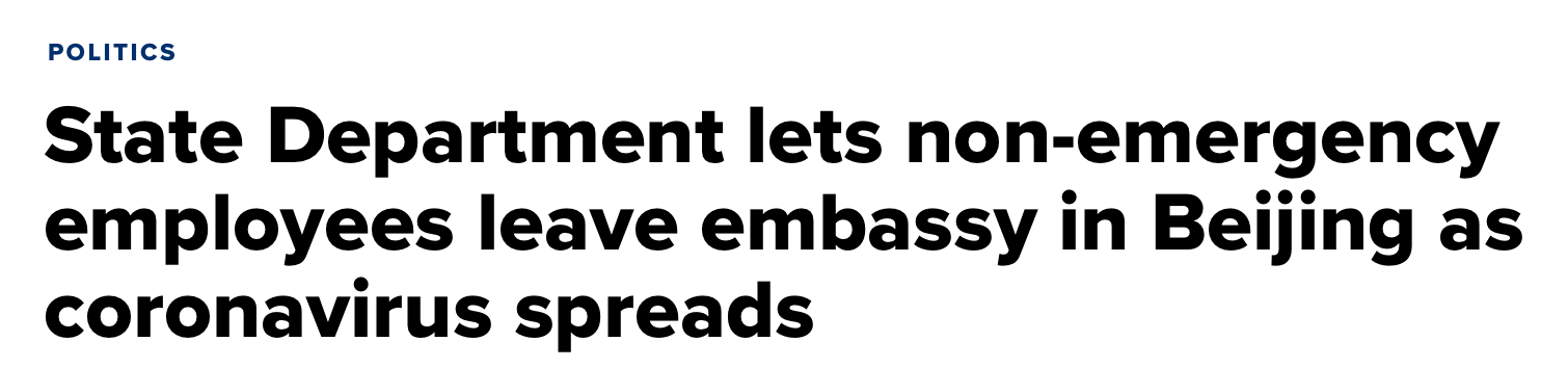 昨天,美国国务院命令所有非紧急美国人员及其家属从武汉撤出。