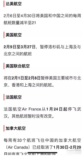 昨天,我们也报道了美国即将赴华的大部分航班即将暂停。