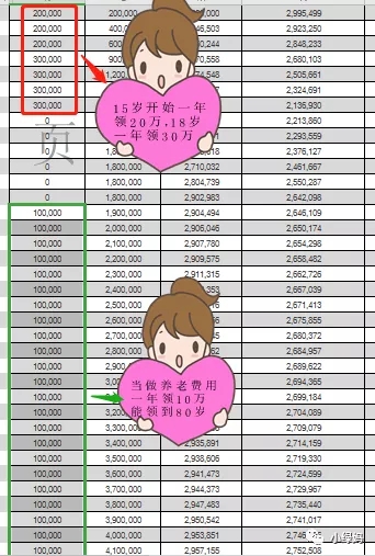 给美宝一年存50万,存5年(时间不长,基本不会断交),总共存250万,然后可以选择美宝什么时候领这笔钱,假设美宝15岁领,上高中,可以选择一年领20万,领3年,大学一年领30万,领4年,美宝的学费有啦!