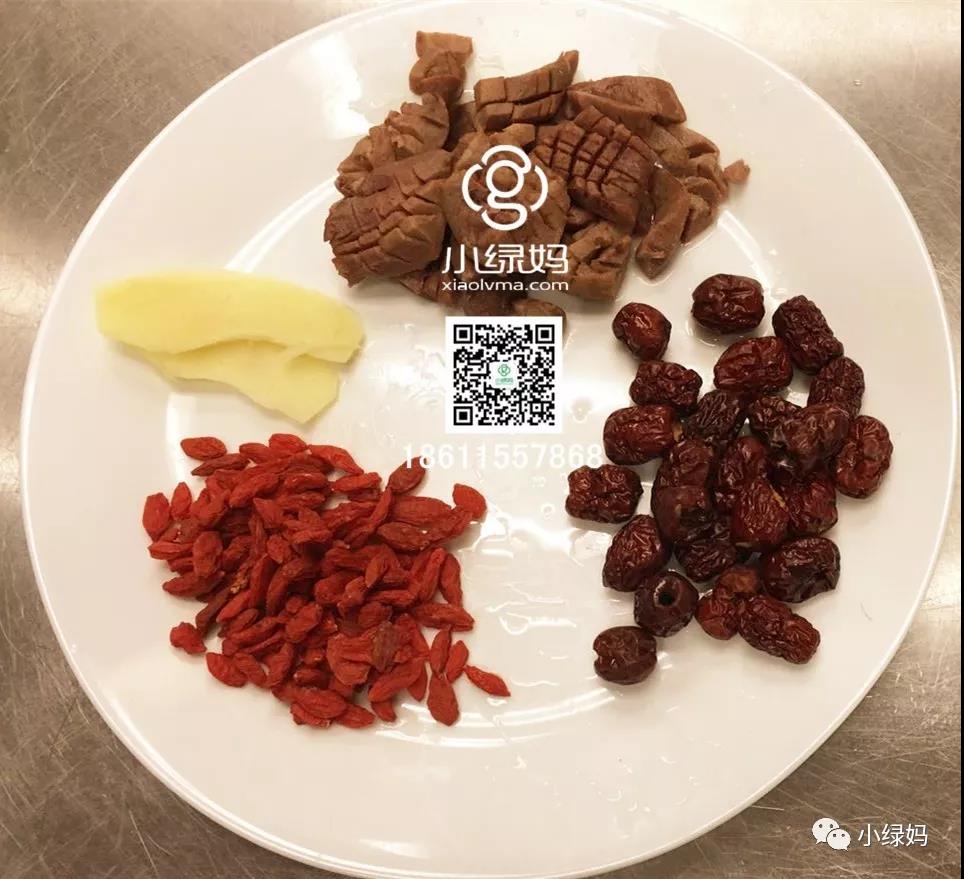 与早餐一起配送,月子每天必喝,是由红枣和枸杞等中药材熬制. 装在水壶里当茶喝,有排毒、养血、补肾的作用。 (图为珍芯早餐,壶里面是养肝茶) 月子第一周,每日必吃麻油猪肝,大多数人只知道猪肝是排毒的,而在庄淑旂月子理论中猪肝是有破血功效,以促进恶露排出。 汤也是比较清淡的排骨汤或鸡汤,比如枸杞鸡汤、薏仁香菇鸡汤、排骨山药汤,不喝猪蹄、鲫鱼汤,避免过补导致奶水堵住。 素菜类以绿叶菜为主,促进肠蠕动,减少产后便秘,菠菜,油菜等;水果不要吃性寒的,诸如西瓜。 【需要注意】 台式月子餐没有西红柿鸡蛋汤、丝瓜汤、紫菜汤这种纯素汤,这些没有补益效果。产后下奶期间有堵的现象,基本在月子当中非常常见,妈妈需要坚持母乳喂养、持续按摩、开奶等方式缓解堵奶状况,吃素汤并不能缓解堵奶,说个不恰当的比喻,即使喝白开水,产后毒奶仍然不会缓解。 第二周必吃麻油腰花。 整个怀孕期间,腹部凸起在前端,女性需要调整状态以保持身体平衡,脊柱长期负重,产后第一周因为有生产激素影响,身体还处于兴奋状态,腰疼状况不会显现。 (图为麻油腰花原材料) 第二周激素水平下降,腰酸背痛状况全出来了,这时候补腰强肾是调理重点。 同时,经过第一周调整,乳腺管基本全部打开,这时候是催乳最佳阶段,猪蹄汤、鲫鱼汤、鲈鱼汤、青木瓜排骨汤,都是催乳佳品。 (图文青木瓜排骨汤原材料) (图为活鲫鱼汤原材料) 【需要注意】 活鲫鱼在美国是昂贵食材,只有华人超市有卖,一磅15-18美金,比三文鱼之类都贵,我们只是豪华馆、尊享馆配给。 另外,药膳汤有四物汤补气、四君子汤补血、四神猪肚汤健肠胃、淮山莲子鸡汤健脾润肺、黑豆杜仲排骨汤排水消肿等。 (图为四物鸡汤) 每顿是2个汤,一天4汤,妈妈吃得奶水多多,补气补血,瘦身养颜。 (图为月子午餐,汤水非常多) 台式月子大补阶段主要是第三周和第四周 第三周开始吃麻油鸡。 老实话,当年庄淑旂定这个食谱的时候,天天吃鸡也算奢侈品,而如今食材大大丰富,我们精挑细选上好的三黄鸡,以增进炖补的口感。同时,采购在美国是昂贵食材的乌鸡,给妈妈们炖汤喝,这可是月子中心较少提供的,乌鸡是女性滋补极品,滋阴清热、补肝益肾、健脾止泻。 大补阶段的重头戏是十全大补汤,有十全大补鸡汤、十全大补排骨汤、十全大补鱼汤。 (图为十全大补排骨) 此汤品是由有补气作用的四君子汤和有补血益处的四物汤加黄芪、肉桂组成,加上整鸡、排骨、鱼块炖煮,喝起来会感觉药物太浓,没有原材料的香味,但是其补益功能确实不是一般汤水所能比拟的。 其他汤品有元气鸡汤、清炖牛尾汤补气,当归鸡汤、淮山枸杞炖牛腱补血,在此就不一一列举了。 (图为干贝元气鱼汤) 【此处注意】 “生化汤”有助于排淤血,被大陆妈妈奉为月子必吃神汤,而在实际运用当中,活血过度,会导致血量增多,产后气血丢失,所以,在台湾,生化汤已经不是人人都吃,基本是根据医生建议。在小绿妈月子会所,我们只有顺产妈妈前3天提供生化汤,剖腹产妈妈不宜食用。 (图为生化汤) 月子期间,妈妈因为哺乳消耗,三正餐基本不能满足能量需求,所以,整个月子期间,我们都提供下午甜点和晚上甜点。 甜点种类丰富,有补血活血的红豆汤、益气养血的桂圆红枣汤和补肾养颜的银耳莲子汤; 还有台湾本地特色的芋头椰汁西米露,有健脾功效;桃胶红枣,百合银耳、桂圆糯米、八宝桂圆等等。
