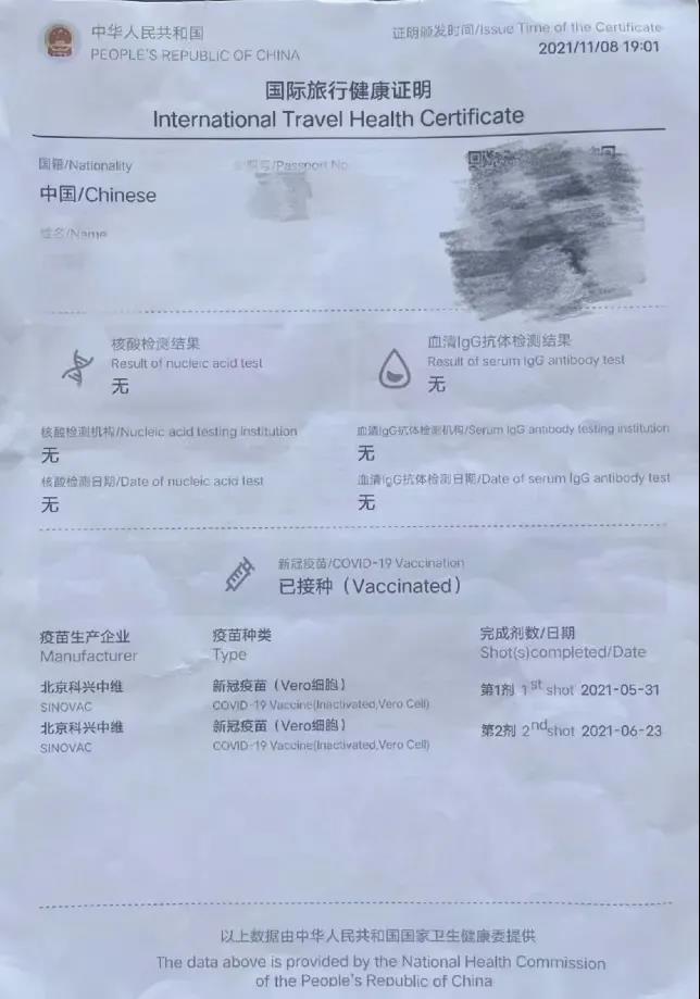 疫苗接种证明,微信小程序“防疫国际健康码国际版”保存PDF文件,直接打印出来。